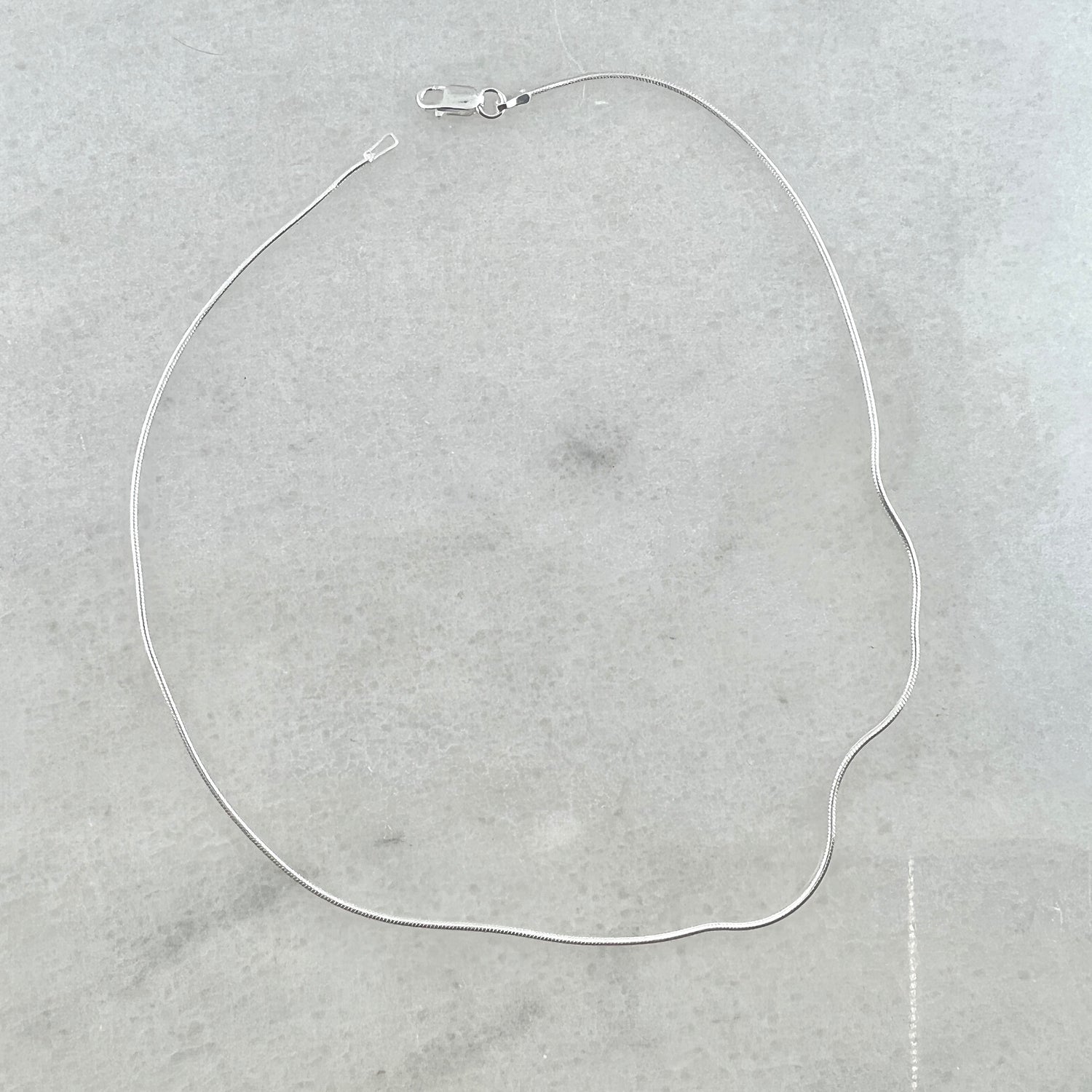 This 14" flexible sterling silver snake chain features a sturdy lobster-claw clasp.