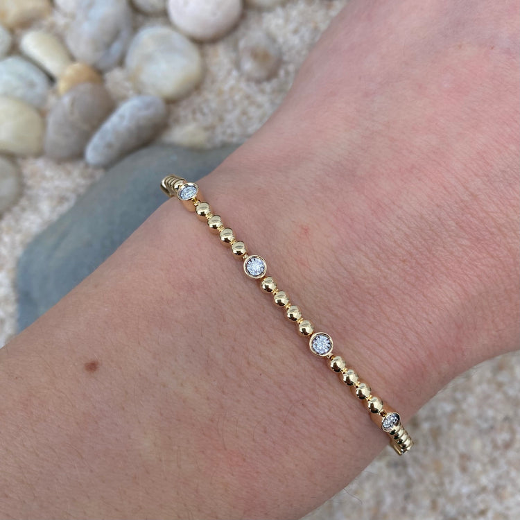 The bracelet features .25cts of bezel set diamonds in solid 14K yellow gold.