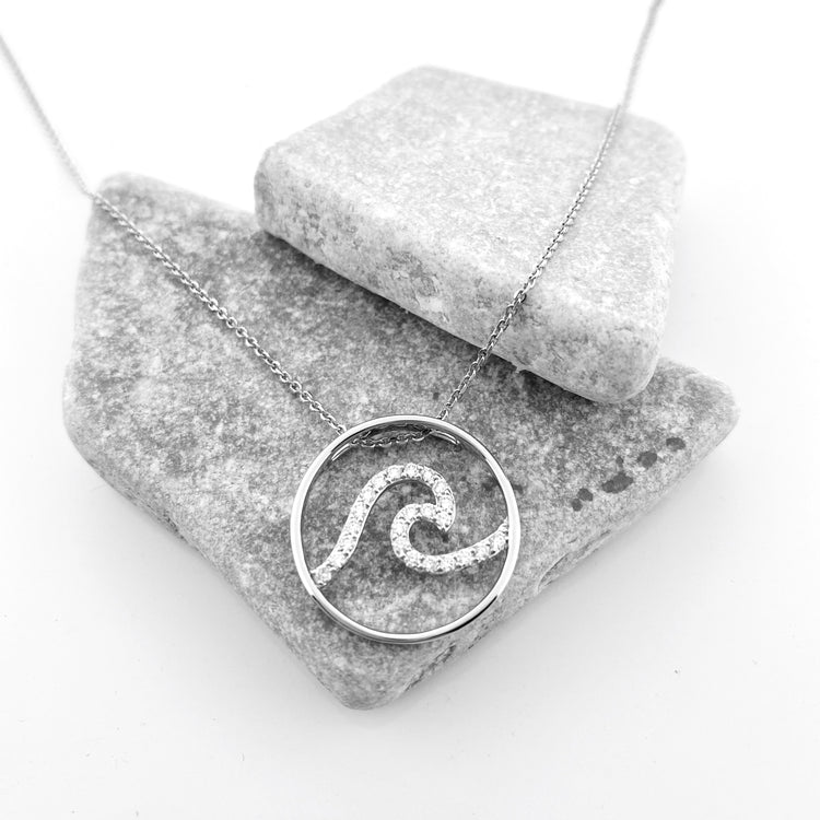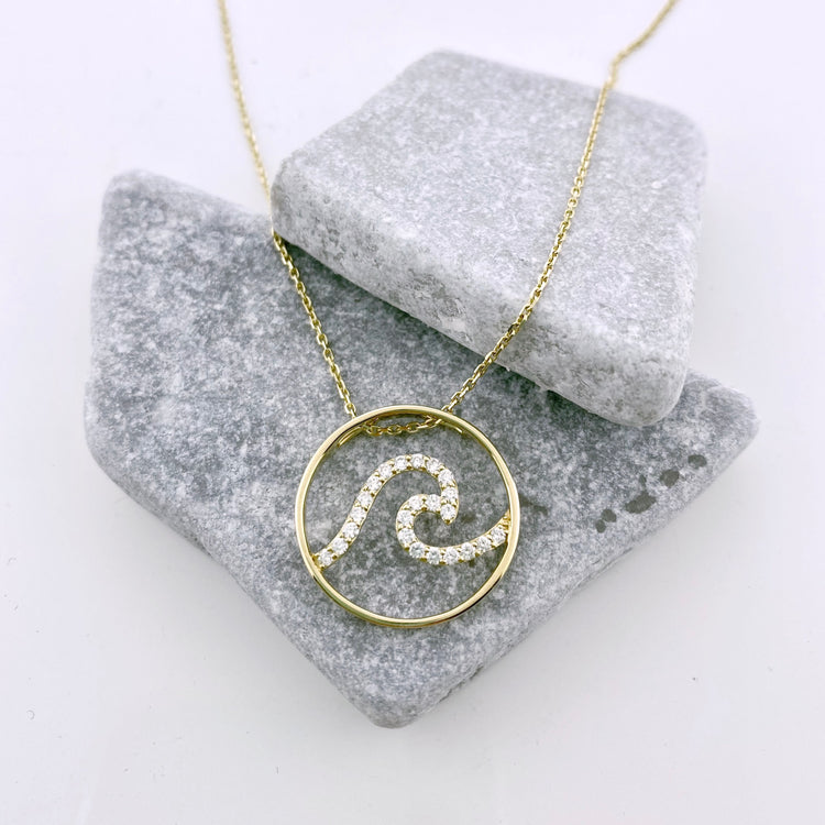 This stunning diamond wave necklace is a more minimalist look compared to our big wave necklace. It can be worn casually or dressed up. The pendant features .28 ct of sparkling diamonds and measures approximately 3/4" (around the size of a nickel).