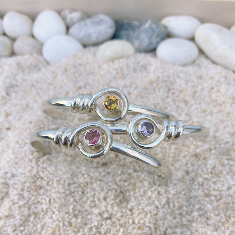 This Sterling Silver hook bracelet features a stunning Citrine gemstone set in the classic Shepherd's Knot. Citrine is the birthstone for the month of November.