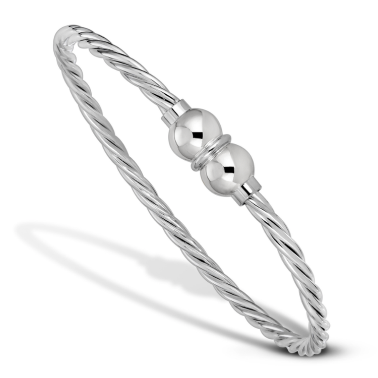 The double ball twist bracelet features a twisted silver bracelet with two cape cod beads. This bracelet looks beautiful stacked with to a single ball bracelet or worn on its own.