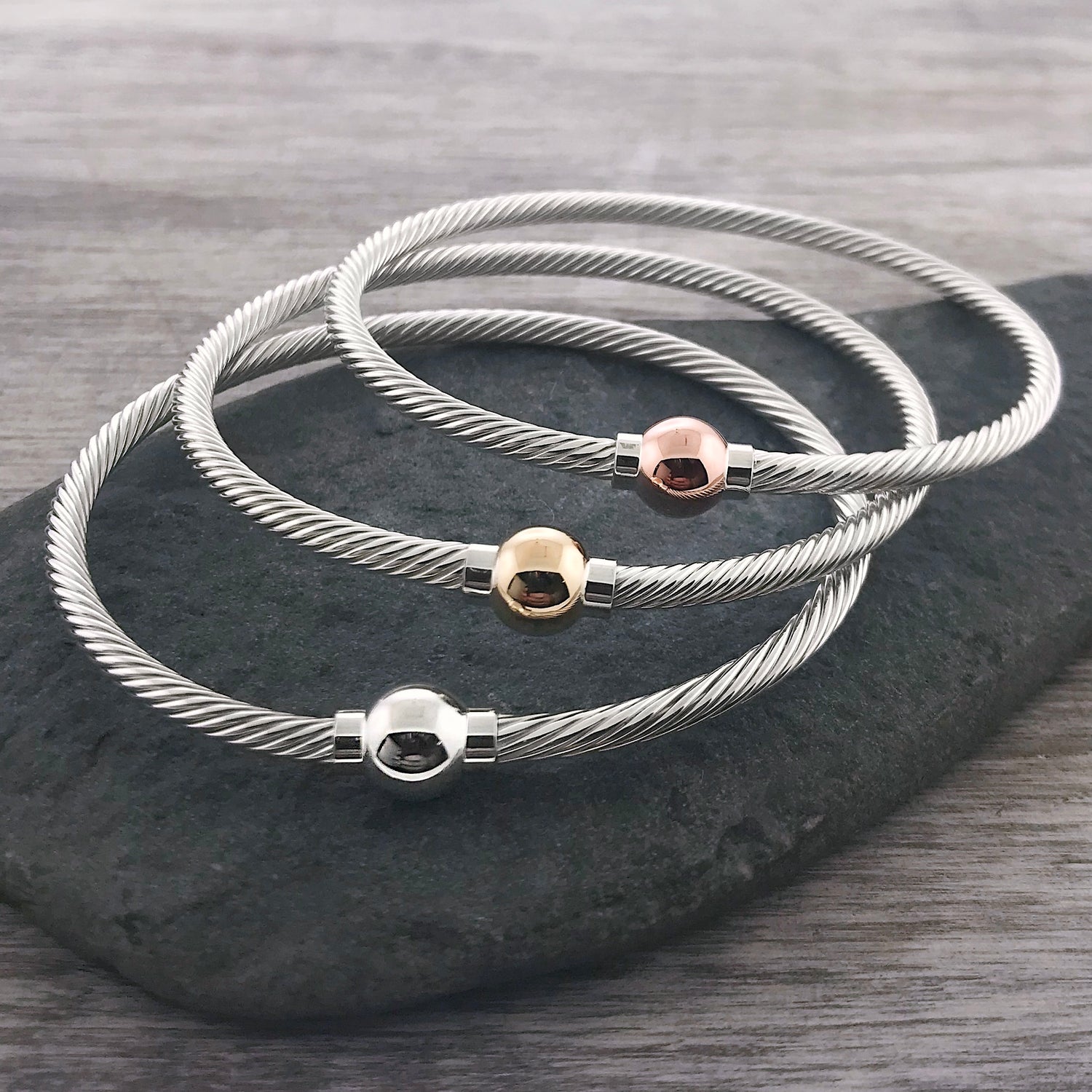 This elegant bracelet features a single ball and a tighter/finer style twist. The weight of the bracelet is slightly heavier, compared to the the original twist bracelet style.