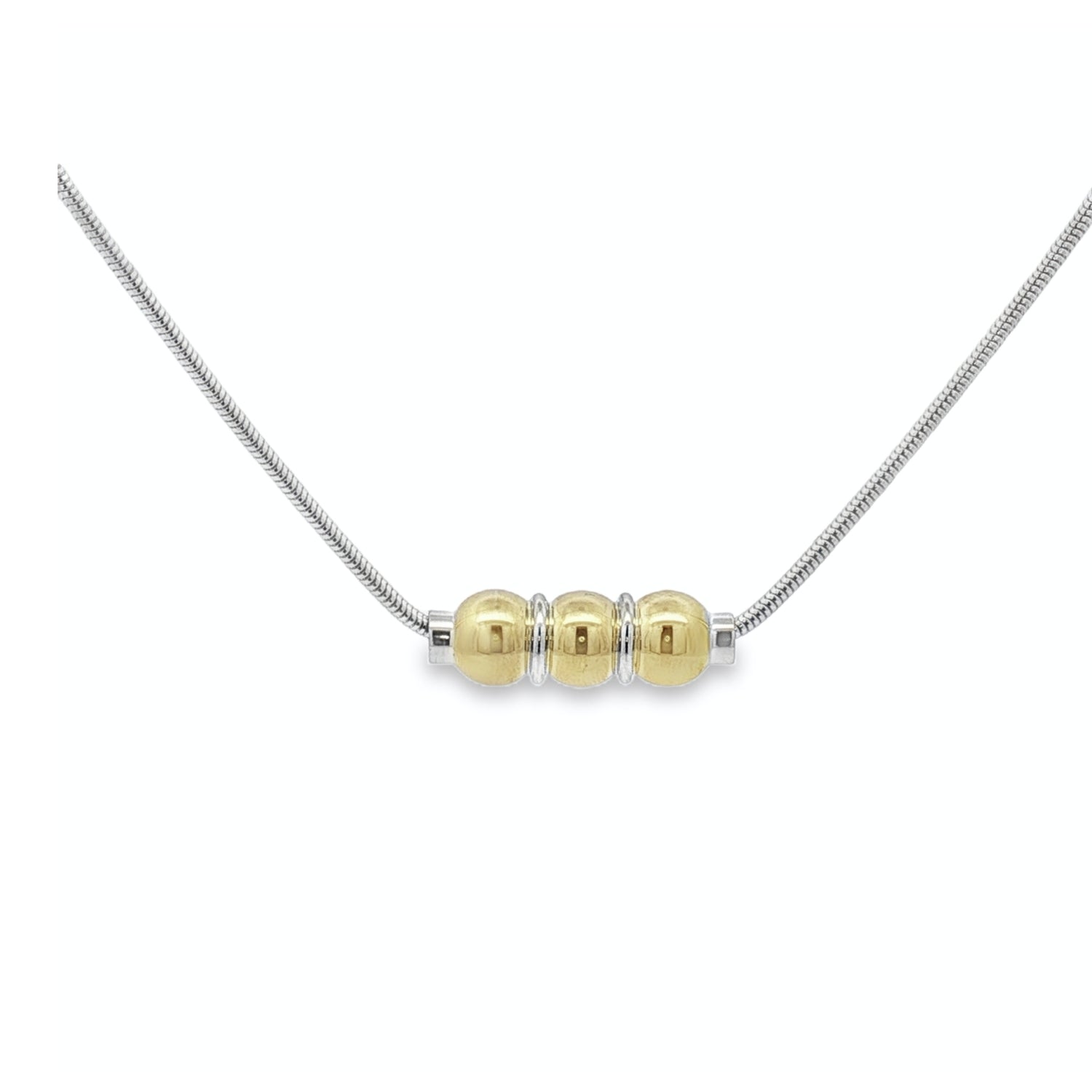 The triple ball necklace showcases the largest Cape Cod pendant featuring three Cape Cod balls fused together, which slides smoothly on a flexible snake chain.