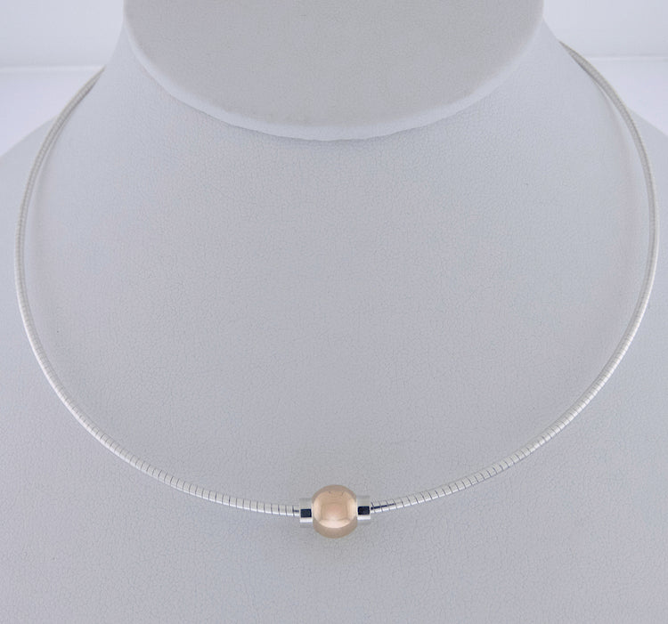 The Cape Cod Omega necklace is for someone who is looking for a more rounded collar shape. The omega necklace is not completely rigid, but it does have less flexibility than a traditional chain - it holds its round shape (as shown in the picture) rather than dipping into a "V" around the neck.
