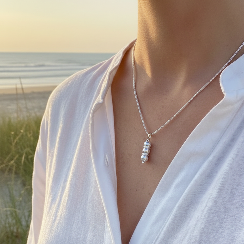 The Cape Cod Triple Ball Drop necklace is now available on our wheat chain. Available in 14k Gold + Sterling silver or All Sterling Silver, it's the perfect complement to any bracelet in the Cape Cod Jewelry line. The wheat chain is quite popular and one of our personal favorites! It is a bright and beautiful necklace with strands of oval links woven together for a rounded look.