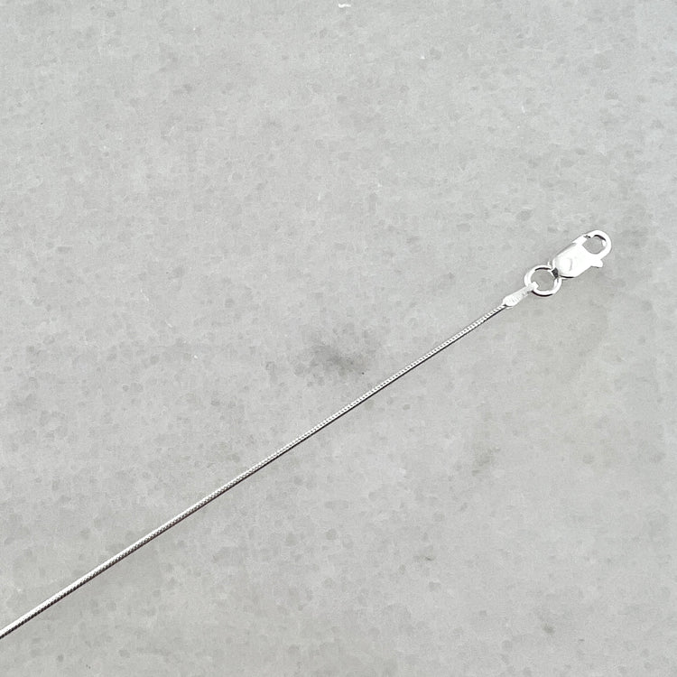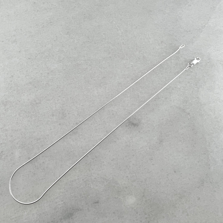 This 14" flexible sterling silver snake chain features a sturdy lobster-claw clasp.