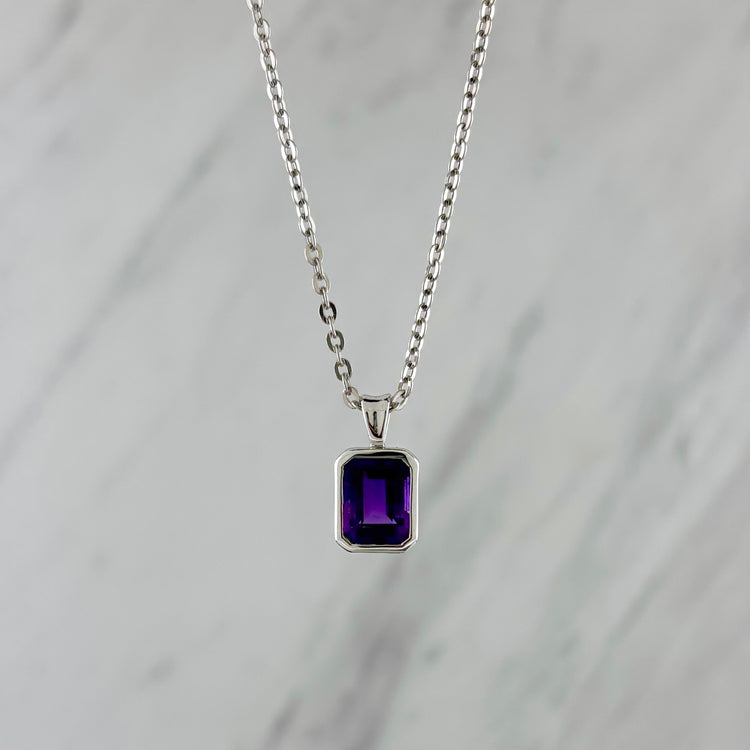 Sterling Silver Emerald Cut Amethyst Necklace