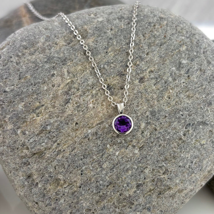 Sterling Silver Round Bezel Set Amethyst Necklace