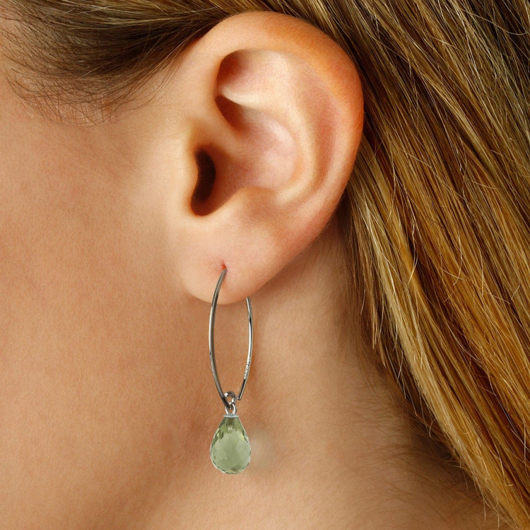 Our classic, stylish sweep ear wire paired with sparkling light green prasiolite briolette stones. Prasiolite is also known as green quartz.