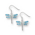 Blue Dragonfly Wire Earrings in Sterling Silver with Vitreous Enamel. Rhodium Plated for easy care.