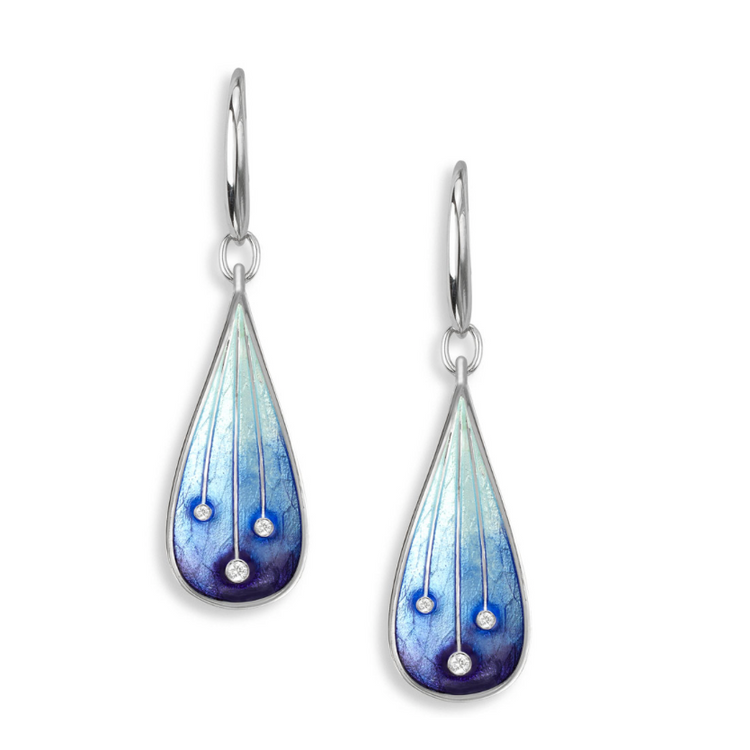 Blue Stars Wire Earrings in Sterling Silver with Vitreous Enamel and White Sapphires. Rhodium Plated for easy care.
