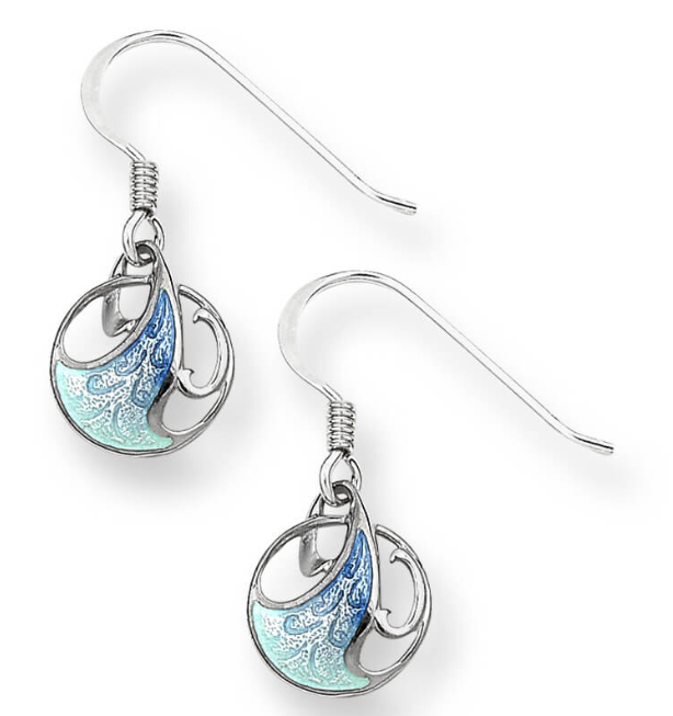 Blue Vitreous Enamel Ocean Wave Wire Earrings