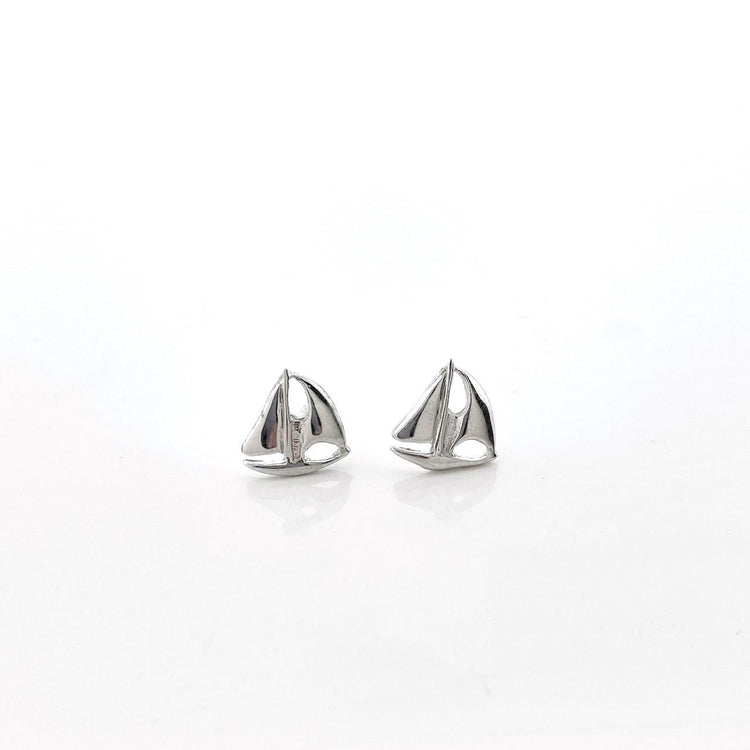 Beautifully detailed sterling silver sail boat stud earrings, handmade here in Massachusetts!