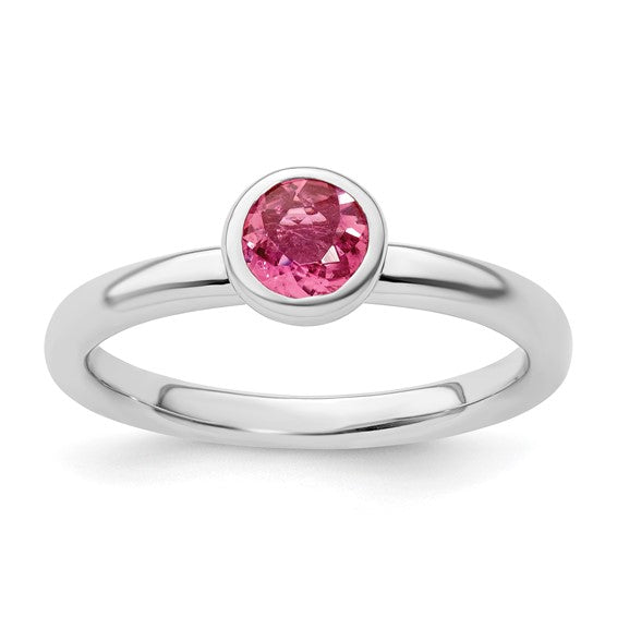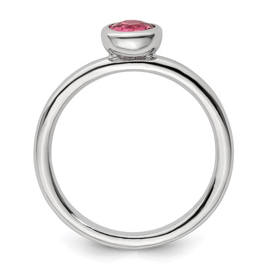 Sterling Silver Pink Tourmaline Bezel Set Ring