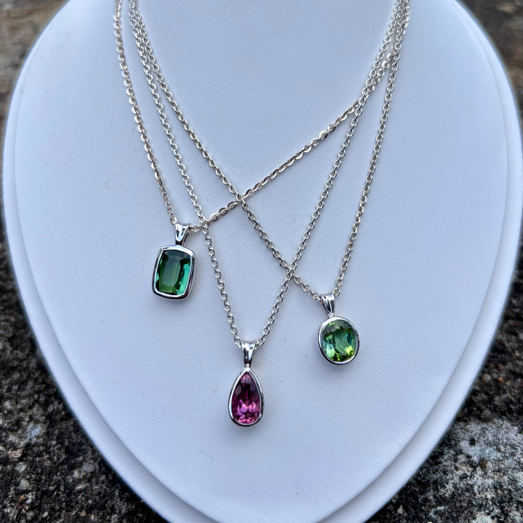 Tourmaline is the birthstone for October.  Contact us for other chain length chains.