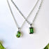 Vibrant Green Tourmaline sparkles in these simple and elegant bezel set pendants. Each stone is a very high quality tourmaline, both with unique color. They are set in sterling silver, and come on 18" silver cable chains.