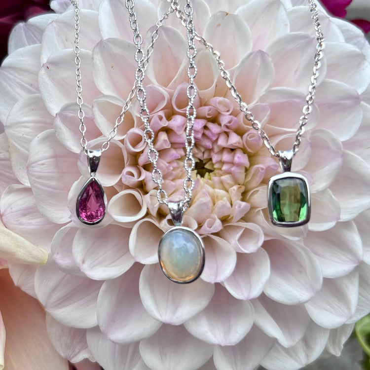 This beautiful pendant features a natural East African Opal with a smooth cabochon cut. The Opal weighs 1.17 carats. The colors in this Opal change depending on the light and backdrop, with beautiful blue and yellow tones.