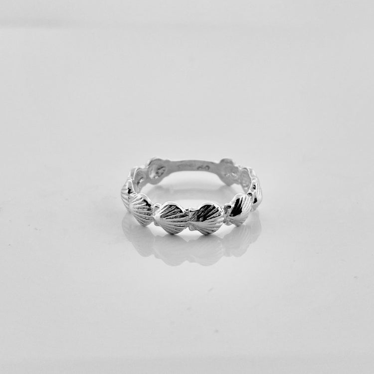 A slim fit band is perfect for the ocean lover! This Sterling Silver band features tiny scallops almost all the way around, for a delicate touch of the sea on your finger.
