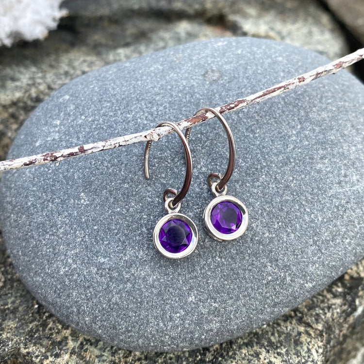 Sterling Silver + Amethyst Bezel Mini Swoop Earrings