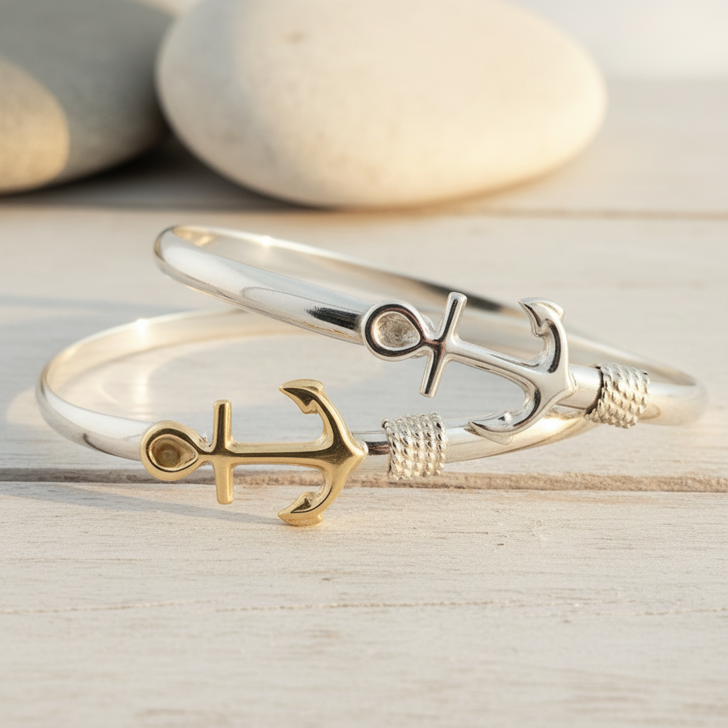 Available in all sterling silver or with a solid 14k gold anchor.