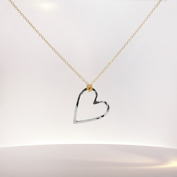 Made on Cape Cod, this necklace features a hand-forged Sterling Silver heart with a hammered texture. The 18" sterling silver cable chain wraps around the heart.