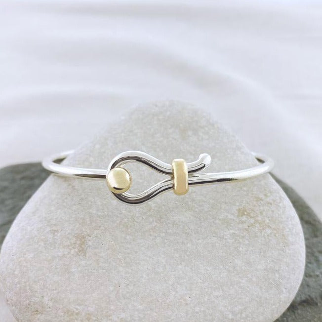 The simple design of the Sandbar Hook Bracelet features a single band, the same width of the single ball Cape Cod bracelet. It is beautifully accented with the classic 14k gold ball and gold bar wrap.