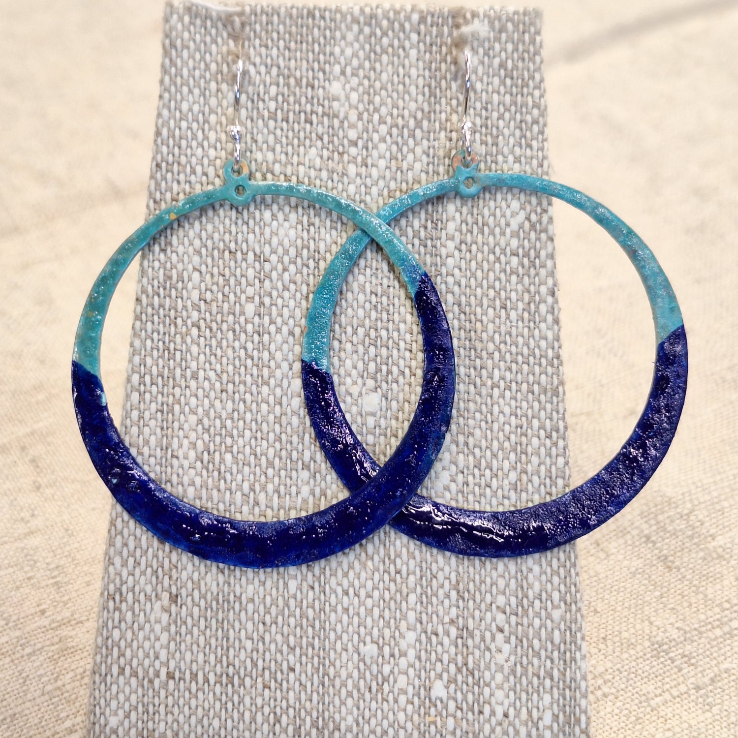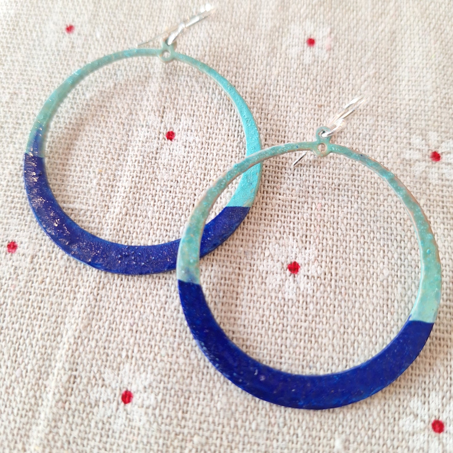 They have a gorgeous turquoise color achieved through patina on copper. Gold filled ear wires.