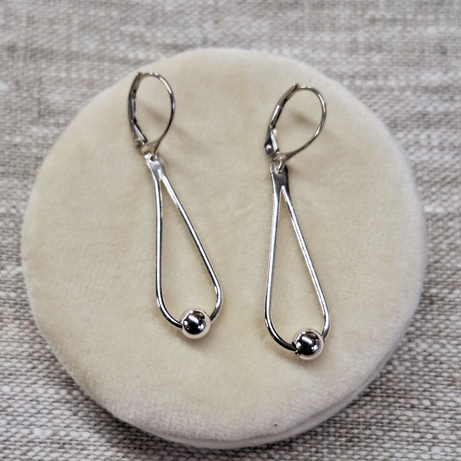 Handmade on Cape Cod, these earrings are inspired by beach sunsets. They feature the classic two tone style, with sterling silver looping down to a single 14k gold ball, available in yellow or rose gold!