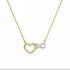 This 14k gold necklace features a central yellow gold heart interlaced with a white gold infinity symbol. It is attached to a 17" yellow gold chain.