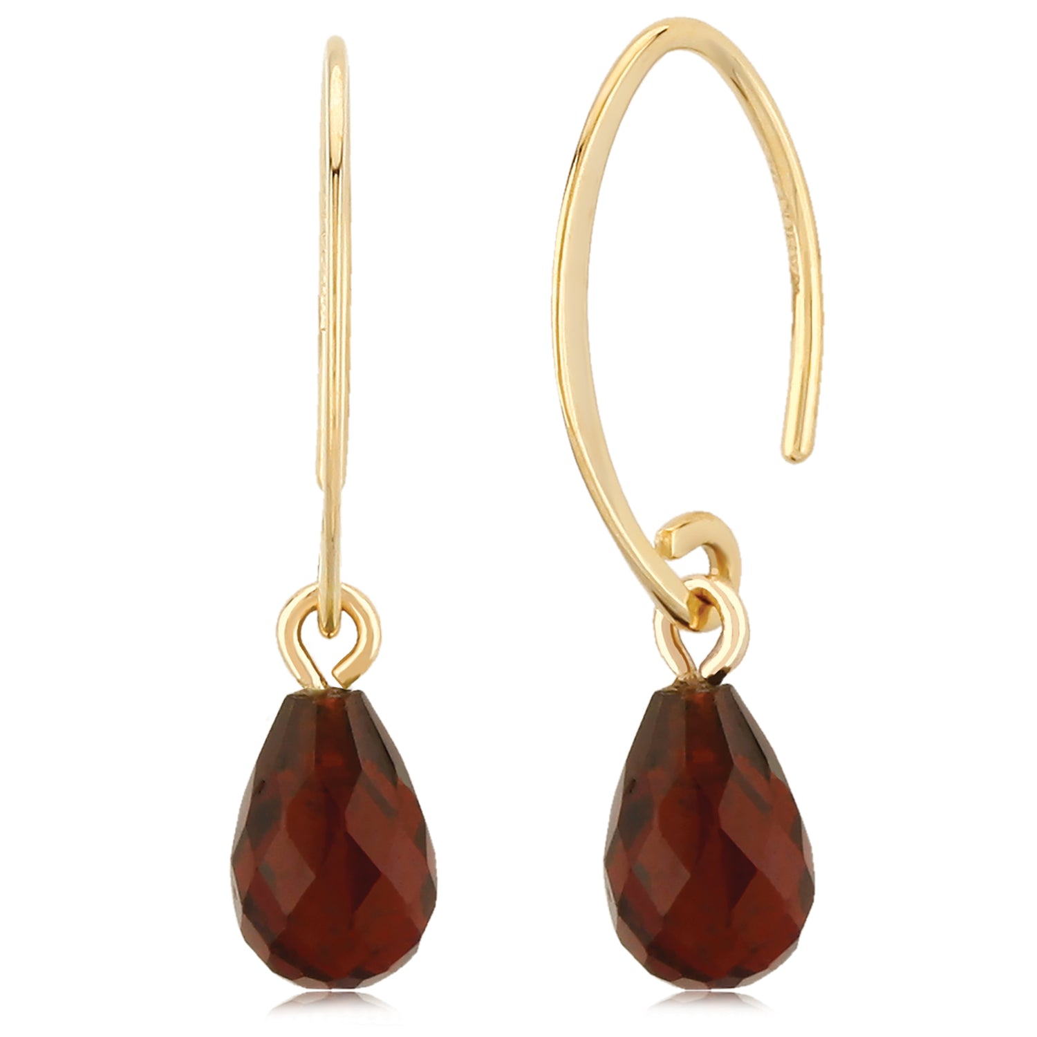 14K gold and sparkling garnet briolette stones make for the perfect drop earring! Earrings measure 1" in length. Handmade in New England.