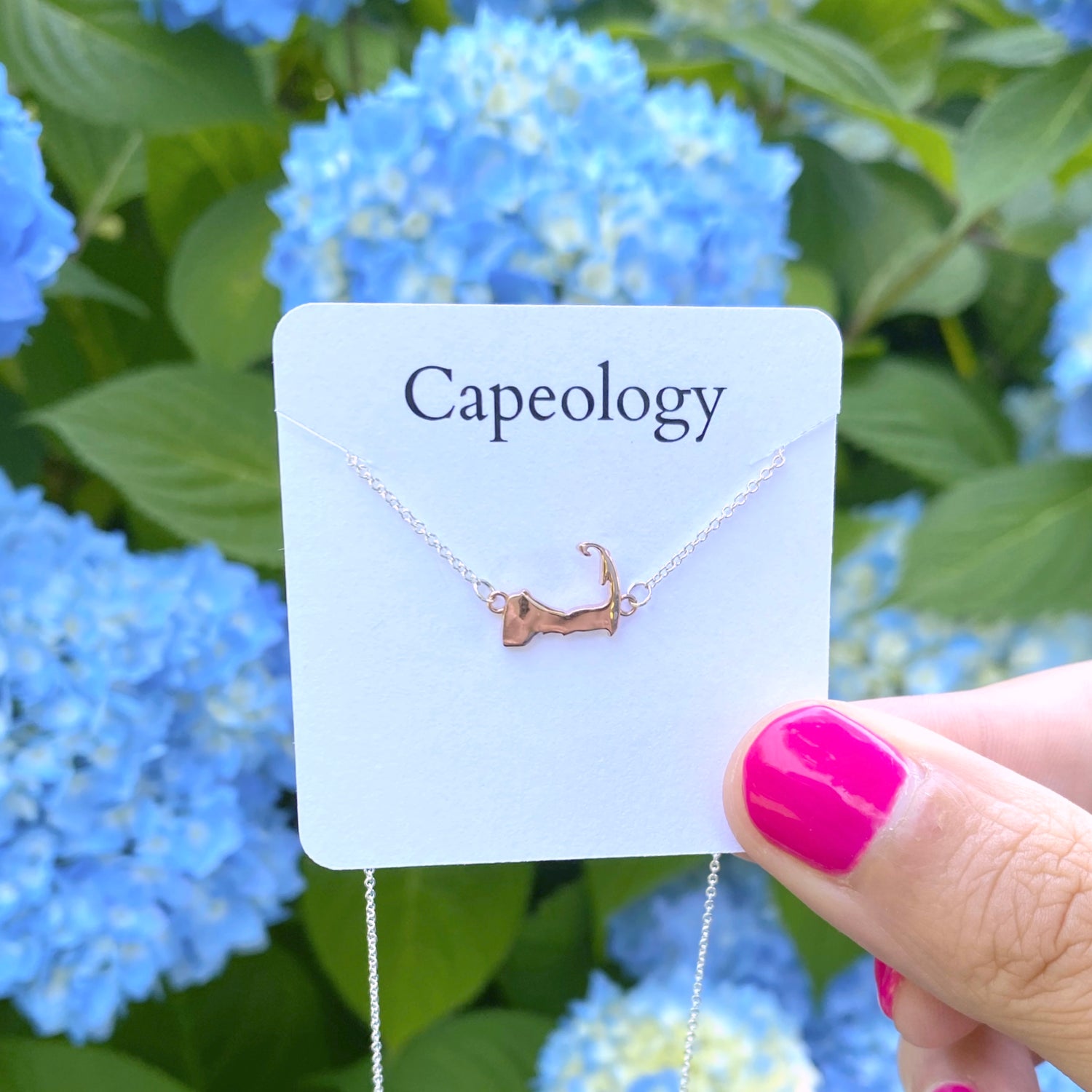 Capeology's Cape Cod Map Necklace lets you wear this special place wherever you go. For many, Cape Cod is not just a place, it's a memory, a smell, a sound. No matter if you've lived on the Cape your entire life or if you've only been once, Cape Cod tends to leave a lasting impression on all. Wear your necklace as a reminder that a part of the Cape is always with you. Proudly made in the USA.