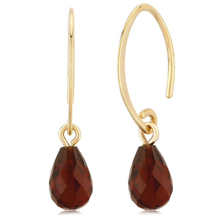 14K gold and sparkling garnet briolette stones make for the perfect drop earring! Earrings measure 1" in length. Handmade in New England.