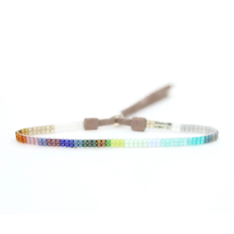 Designed by Julie Rothman and handwoven in California, these bracelet adds a pop of fun color to any wrist. Adjustable from 6" to 9" wrist size.  Sterling silver sliding clasp and leather tassel ends, 1/8" width.