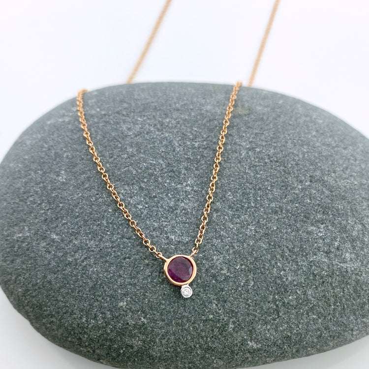Ruby + Diamond Rose Gold Necklace | By Meira T