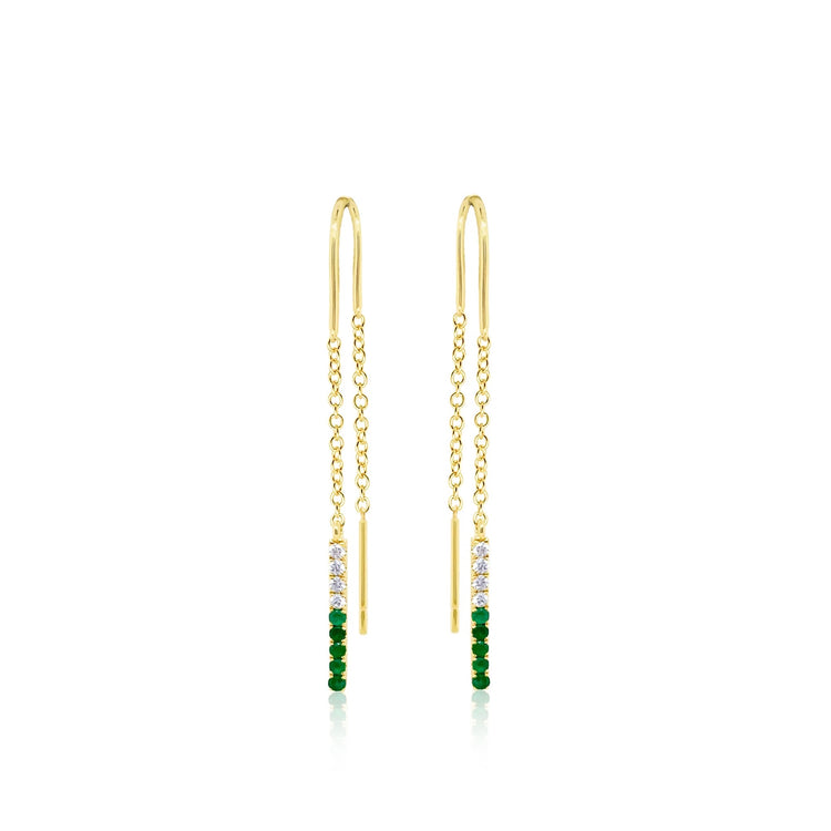 14K Diamond + Emerald Threader Earrings | By Meira T