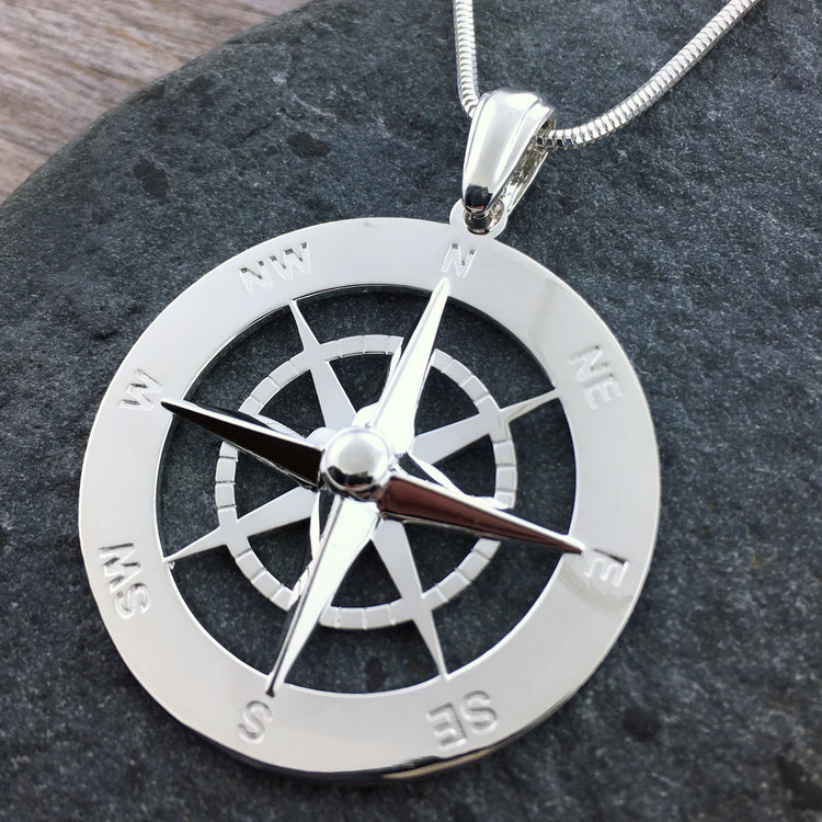 This is our largest and heaviest sterling silver compass rose pendant which is perfect for both men and women.