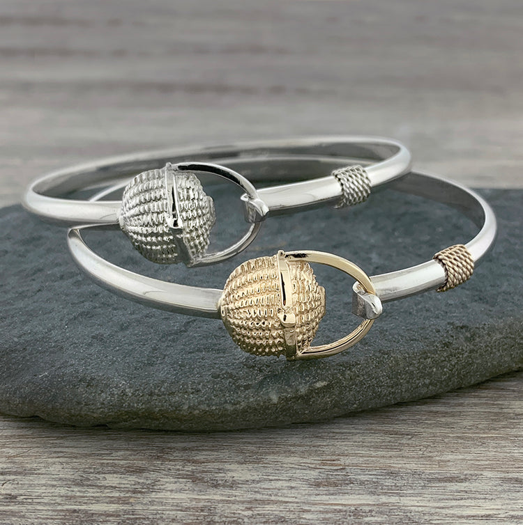 This bracelet features an covered Nantucket basket with a flat back for a comfortable fit.