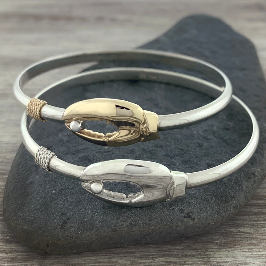The Lobster Claw bracelet features a nice sized shiny lobster claw, with the bottom claw in matte finish. There is nautical rope detail on the side, which finishes the bracelet beautifully.
