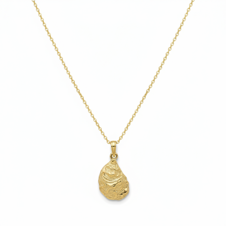 Our oyster pendant is beautifully crafted in 14K gold. It features a detailed ridged oyster shell with a bale. This is the perfect accessory for any beach lover and beachcomber.