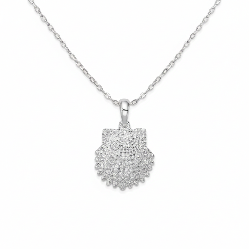 This charming Knobby Seaside Scallop Shell Sterling Silver pendant features a knobby texture that offers a touch of sparkle. Measuring at 1" including the bail.
