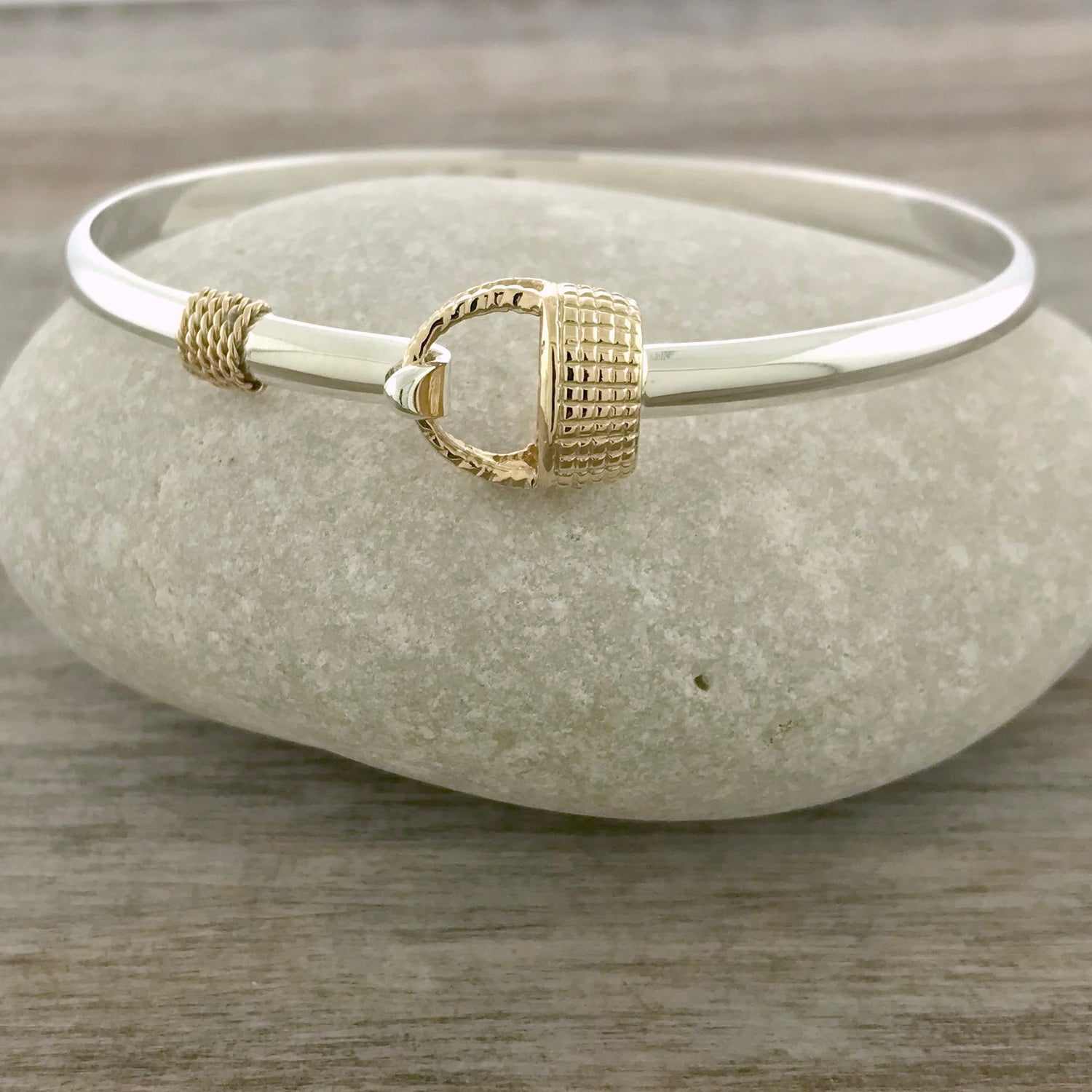 Woven Nantucket Baskets originated more than 150 years ago by crewmen manning lightships off the coast of Nantucket, Massachusetts. They became a symbol of status and elegance on the island. This bracelet is a replica of the actual woven baskets.