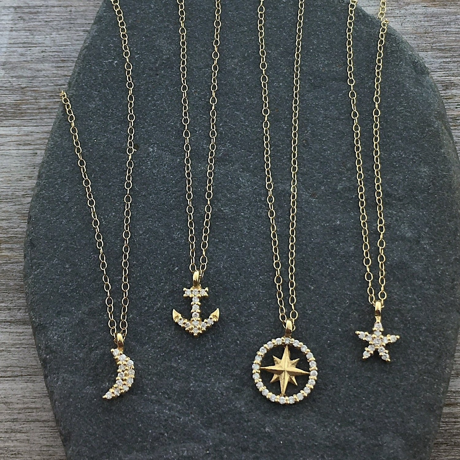 The size of the diamond pendants are around 1/4" (the compass is larger, around 3/4").
