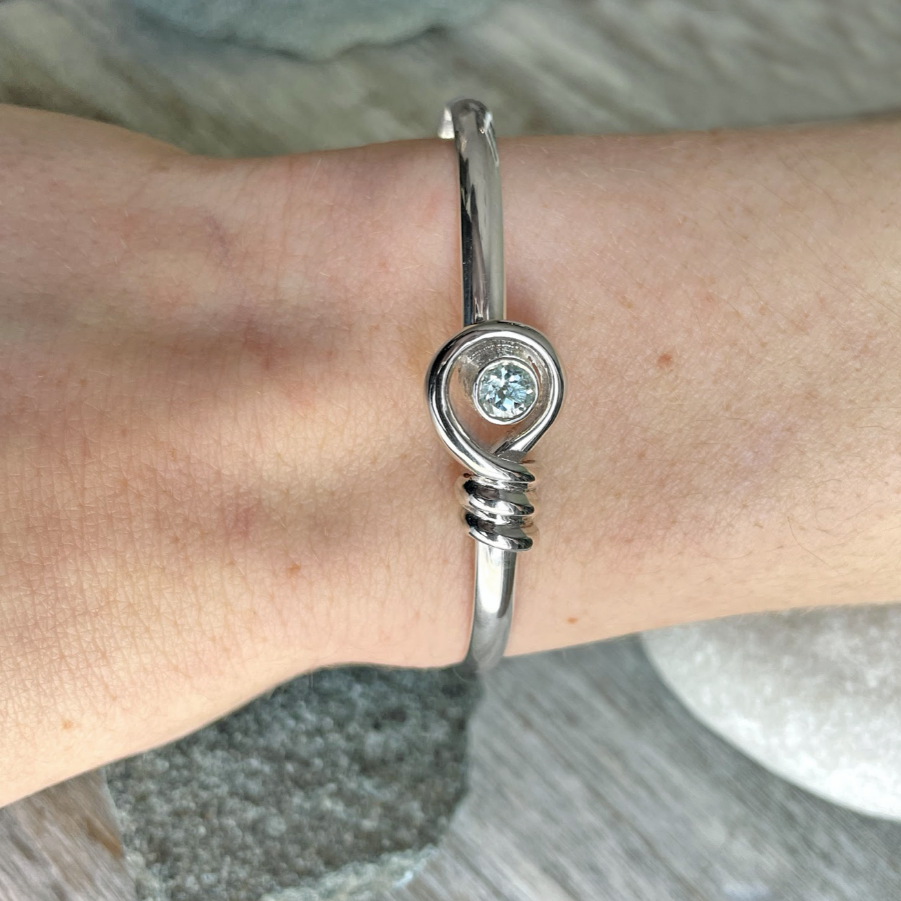 This Sterling Silver hook bracelet features a stunning genuine Aquamarine gemstone set in the classic Shepherd's Knot. Aquamarine is the birthstone for the month of March.