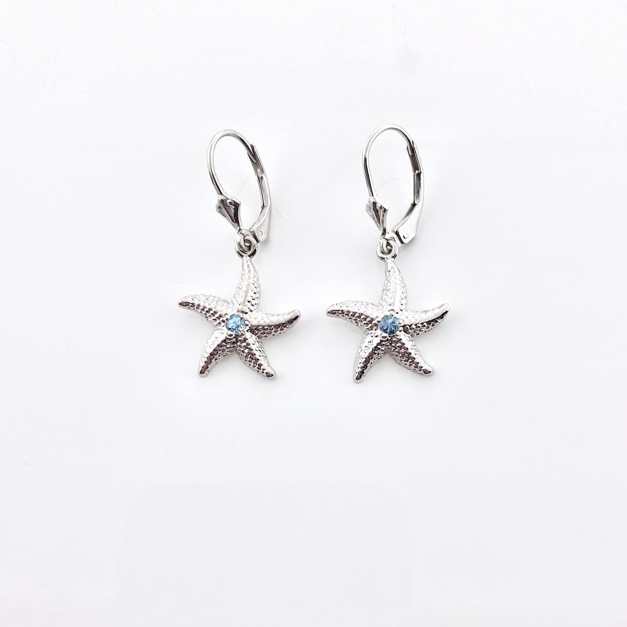 Sterling Silver Starfish with Blue Topaz Drop Earrings