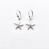 These sterling silver drop earrings feature a intricately textured starfish set with a sparkling blue topaz in the center on lever-back hoops.