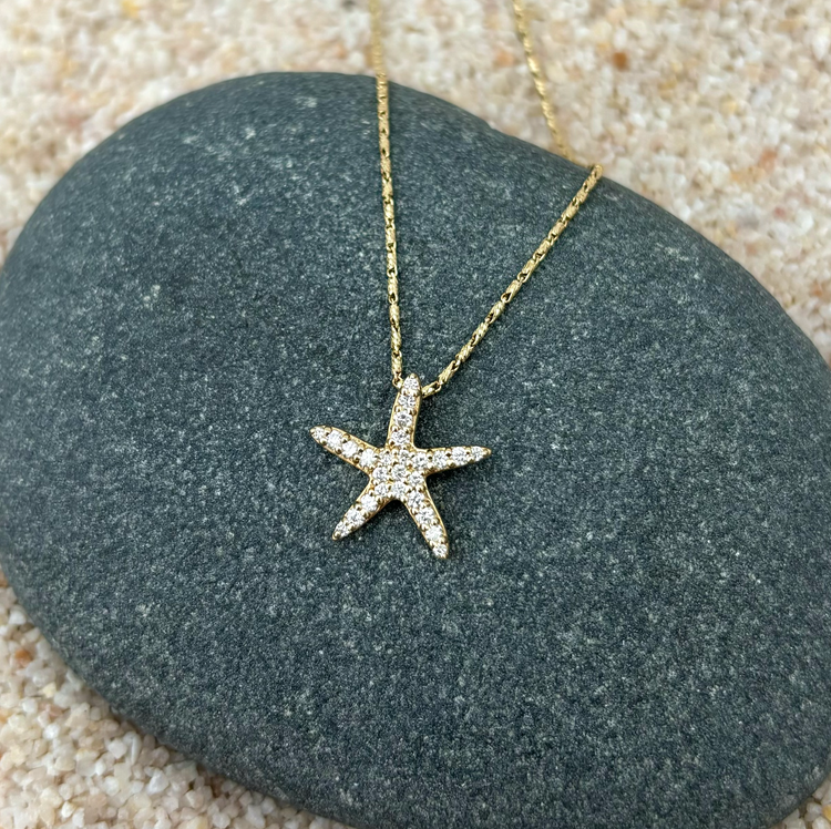 Small starfish measures about 1/2" with .26 ctw diamonds
