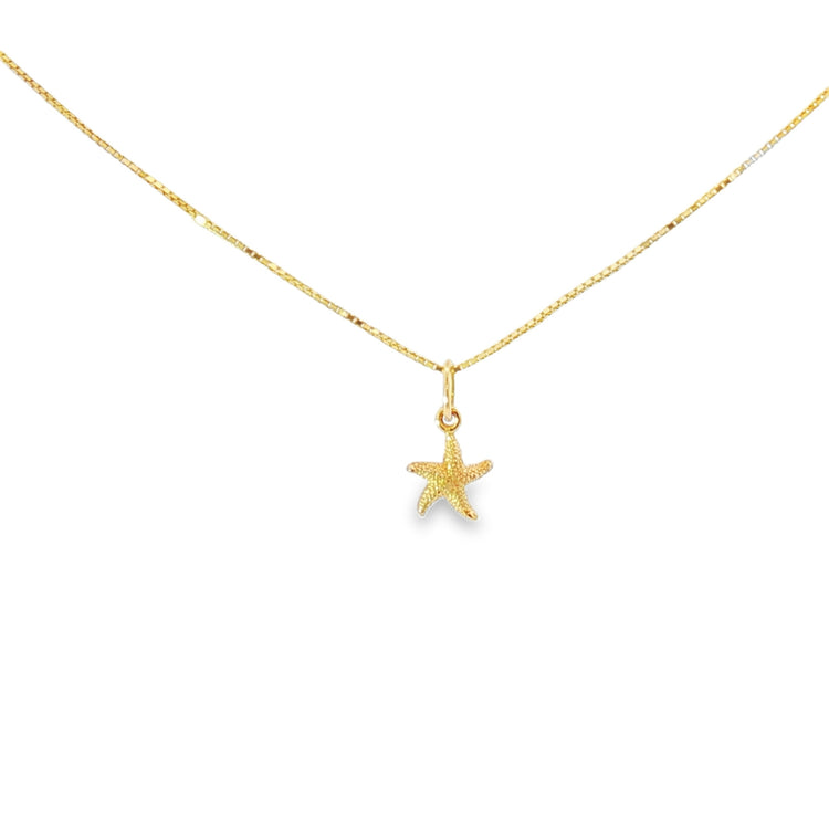 Capture the charm of the coast with our Petite 14K Starfish Pendant. Measuring just 5/8" in size, this dainty gold starfish adds a touch of beach-inspired elegance. Perfect for everyday wear or as a sweet reminder of your favorite seaside memories. The piece can also work beautifully as a charm for a bracelet.