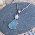 Designed by Misti Martin, this beautiful necklace features an aqua colored teardrop shaped natural sea glass piece with a freshwater pearl, set in sterling silver. It comes on a sterling silver 18" snake chain. (Please email us if you need another length!)