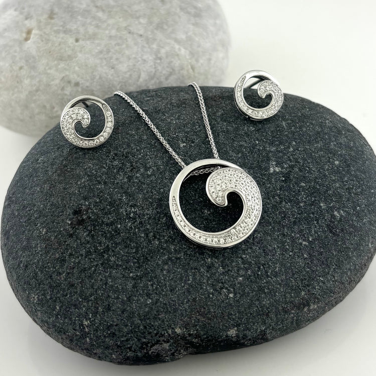 Pairs beautifully with our Sterling Silver CZ Curling Wave Necklace