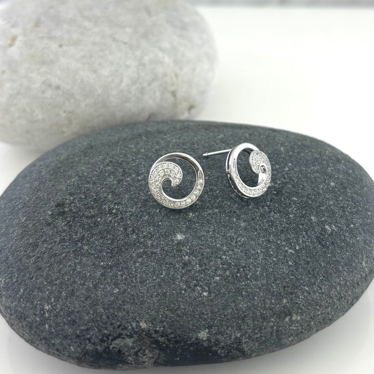 Sterling Silver CZ Curling Wave Stud Earrings